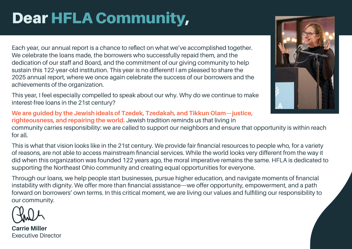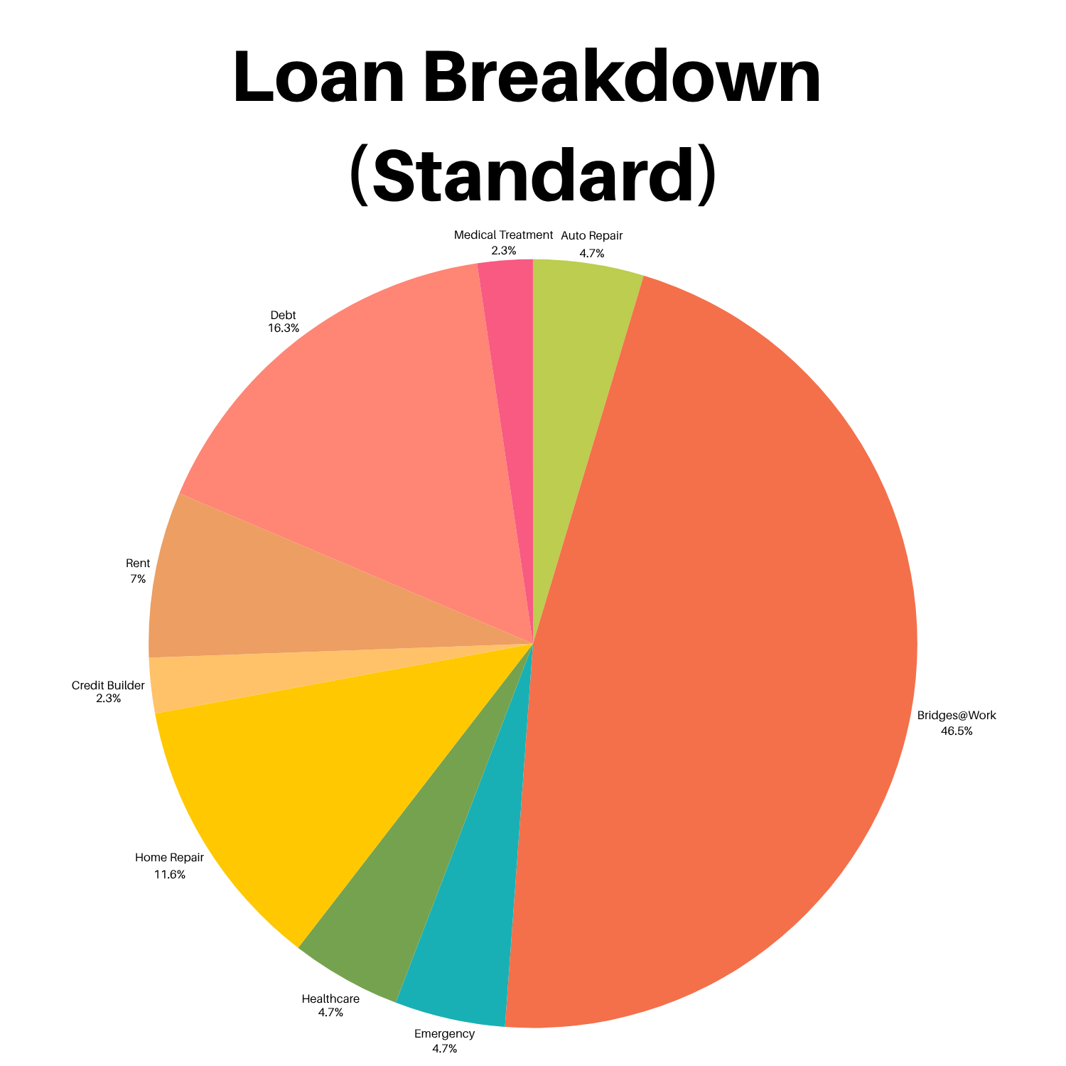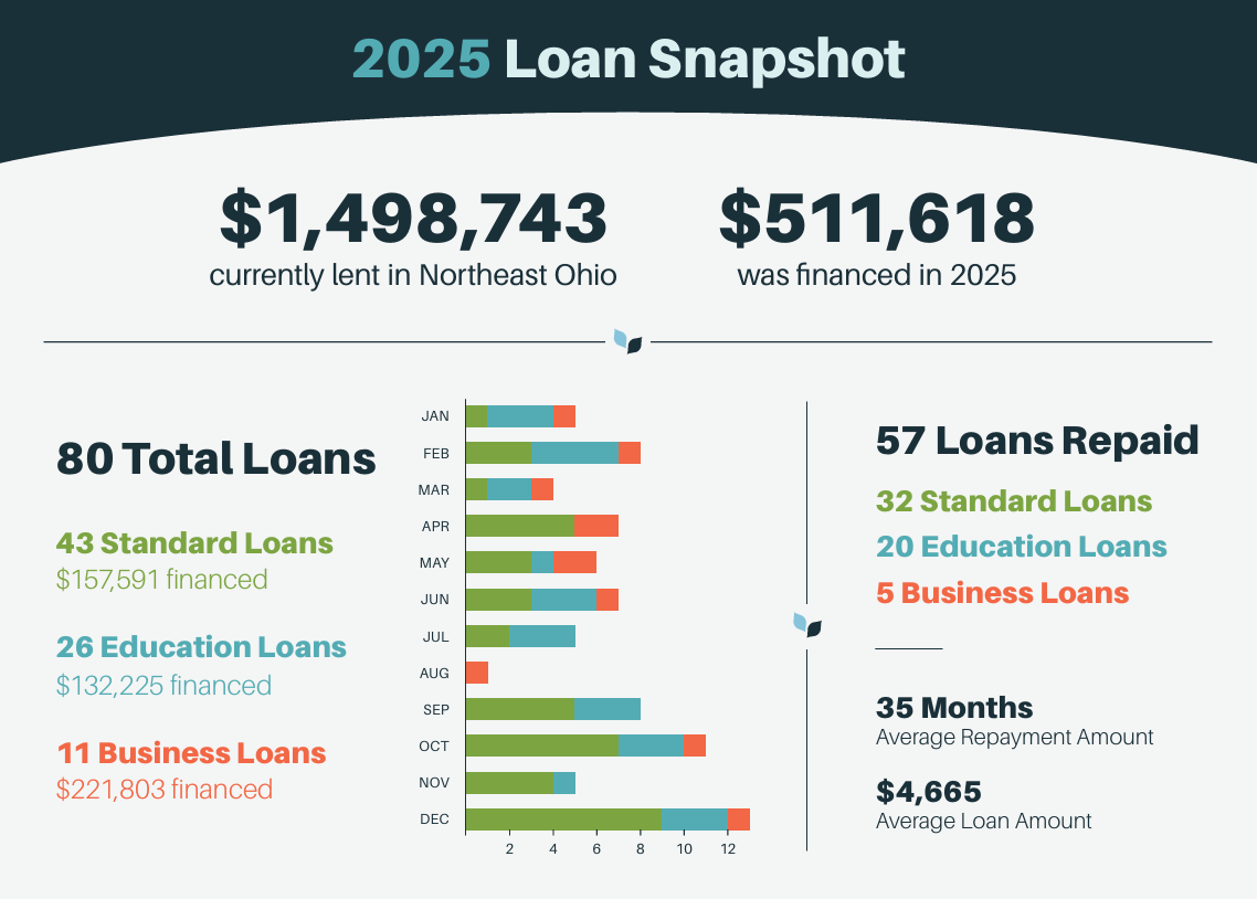Similar to 2024, Bridges@Work is our most popular loan type. Bridges@Work loans help address unexpected financial challenges that workers in Geauga County can experience. Partnered with United Way of Geauga County and Catholic Charities, HFLA helps provide loans that can solve work-related emergency expenses. We are looking froward on 2026 to see this loan product expand to Cuyahoga county!