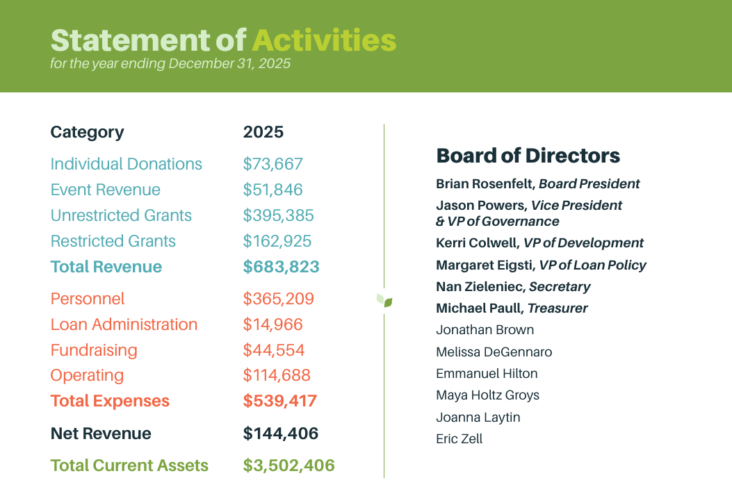In 2025, we had a loan repayment rate of 89% and are always looking at different strategies to stay connected to borrowers throughout the repayment journey.
